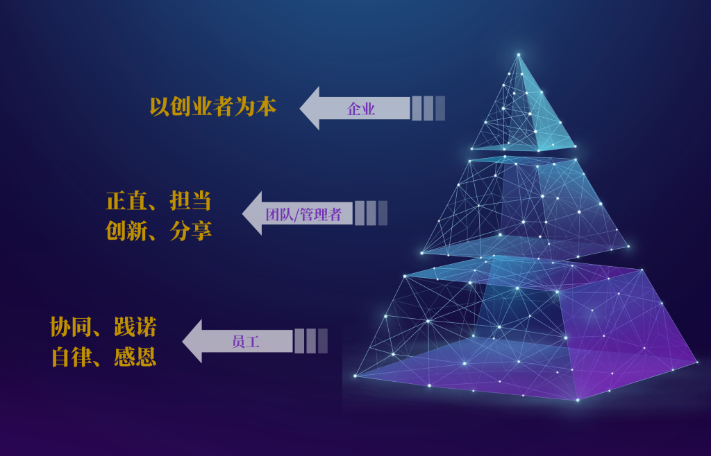 面對(duì)撲面而來的創(chuàng)新時(shí)代,弘信創(chuàng)業(yè)工場(chǎng)進(jìn)一步明確“以創(chuàng)業(yè)者為本”的核心理念,針對(duì)團(tuán)隊(duì)與管理層提出“正直、擔(dān)當(dāng)、創(chuàng)新、分享”的價(jià)值觀要求,將“協(xié)同、踐諾、自律、感恩”作為每一位員工都應(yīng)秉承的底層價(jià)值觀,以全新的精神面貌迎接二次創(chuàng)業(yè)。